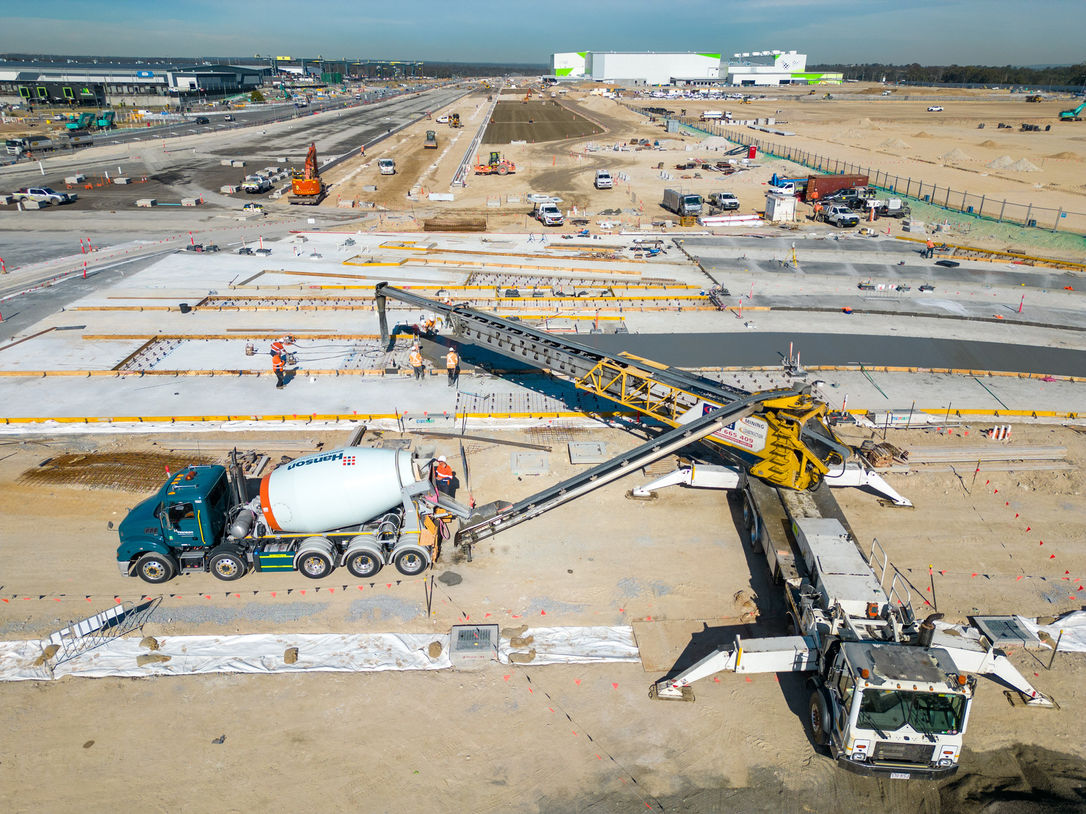 Construction of all in-ground services including 8.5km high voltage, 6.5km of cast in situ drainage and pipelines, 3km of fire water pipelines including hydrants and valves, mass bulk earthworks including placement of SZM and HBB plus all concrete pavements throughout Intermodal.